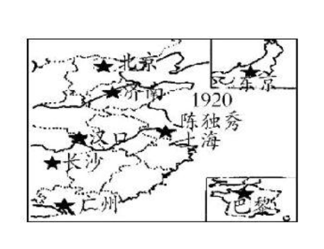 (2)材料二中的“口号”反映了哪一历史事件?材料三中中国第一个共产主义小组在什么地方建立起来的?五四运动。上海。